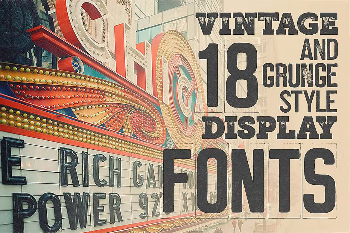 Vous trouverez 18 polices d’affichage de style grunge dans cet ensemble – donc si vous n’avez besoin que de polices grunge, cet ensemble est fait pour vous