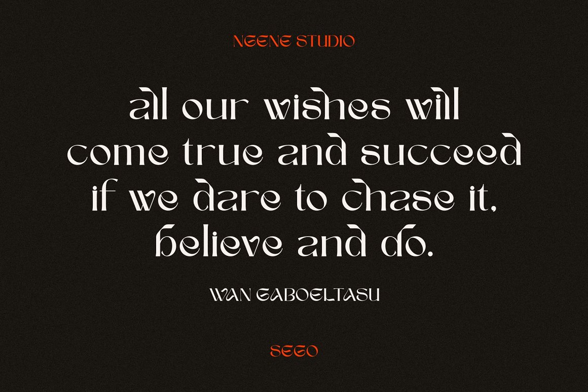 Police serif de style vintage Sego avec une touche élégante et moderne, cette police est étonnante avec différents caractères. Cette police propose plusieurs alternatives, adaptées à la création de logos, de badges, de polices Web, de magazines et autres. Avec une police de caractère très forte, elle rendra votre design différent et plus attrayant.